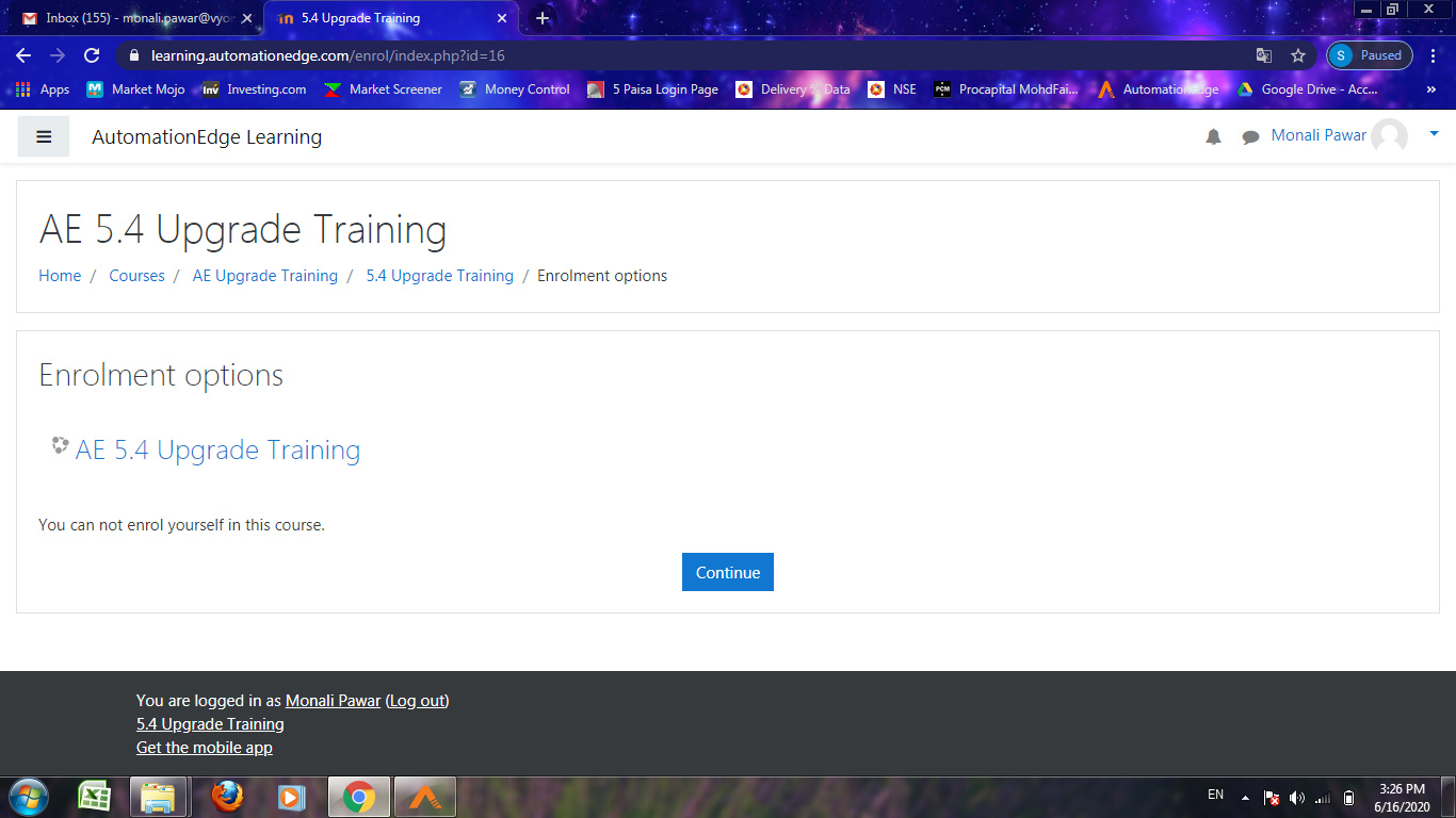 getting following message while trying to enrol in 5.4 Upgrade Training